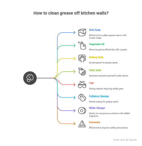1. What’s the easiest way to remove sticky grease from kitchen walls during kitchen deep cleaning?